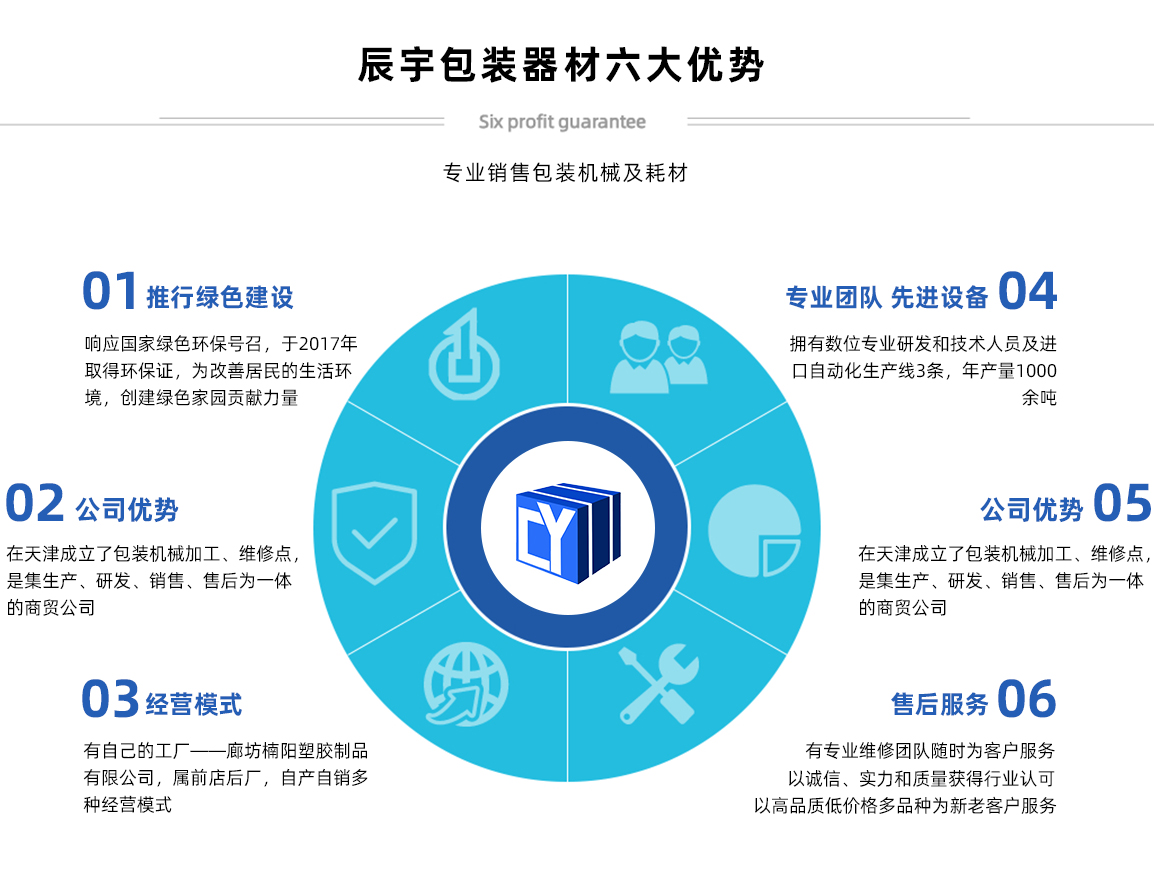 天津辰宇包裝器材有限公司原天津市辰宇商貿(mào)有限公司,位于天津市南開區(qū)密云一支路新南馬路五金城二區(qū)33棟106號(hào),本公司主要經(jīng)營(yíng):打包帶,打包機(jī)系列,封箱機(jī)系列,纏繞機(jī)系列,拉伸膜,膠帶,尼龍繩,其他包裝耗材等產(chǎn)品 公司產(chǎn)品質(zhì)優(yōu)價(jià)廉,暢銷全國(guó)各大城市。同等質(zhì)量比價(jià)格,同等價(jià)格比質(zhì)量,我們確保質(zhì)量,價(jià)錢合理,交貨迅速及時(shí)。公司始終秉承“精益求精,鑄造品質(zhì)的典范”的經(jīng)營(yíng)理念,真誠(chéng)為廣大客戶提供真誠(chéng)的服務(wù)! 天津市辰宇包裝器材有限公司,感謝廣大新老客戶的鼎力支持,竭誠(chéng)歡迎社會(huì)各界朋友前來(lái)洽談業(yè)務(wù),愿真誠(chéng)合作攜手共創(chuàng)美好未來(lái)!